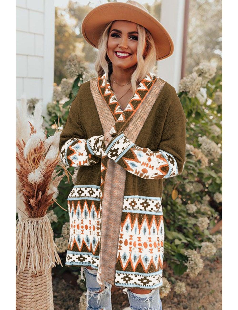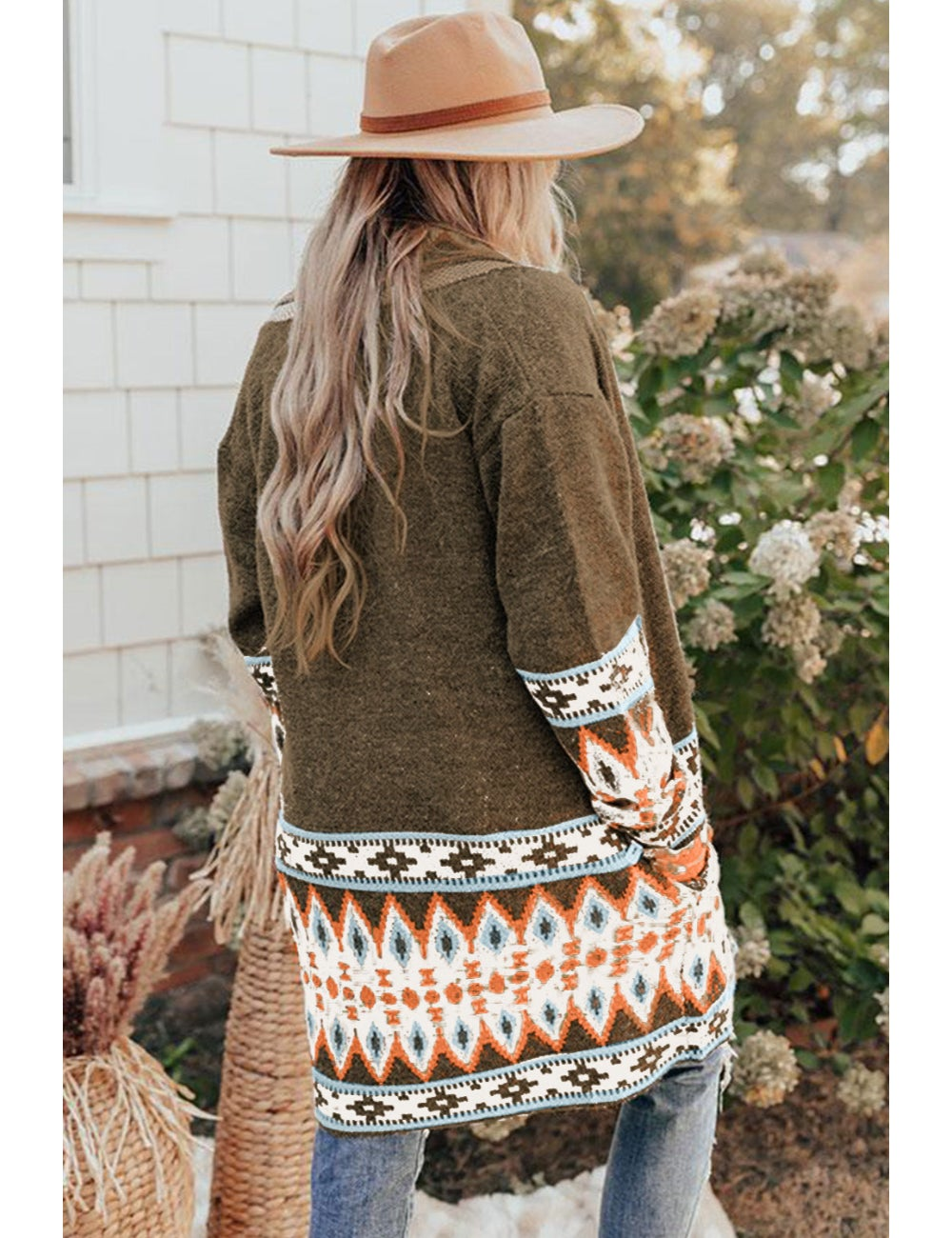 Clara vintage-inspired Aztec-print knitted boho cardigan/shawl