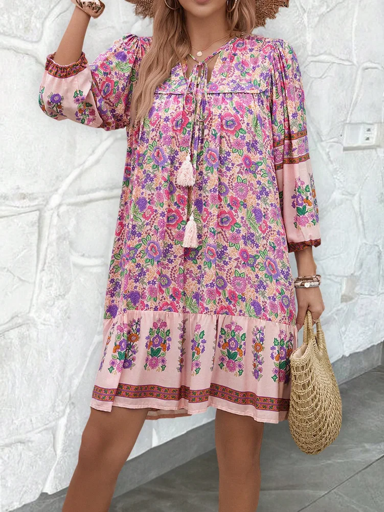 This Sol cotton-blend dress offers a relaxed fit that enhances comfort while embracing a boho-chic aesthetic. Crafted from soft cotton blend, it features a delicate floral print in pink tones, making it a versatile piece for casual or stylish layering. Its breathable fabric and easy silhouette ensure all-day wearability without compromising on feminine charm. Ideal for those seeking effortless style with a pretty, natural vibe.